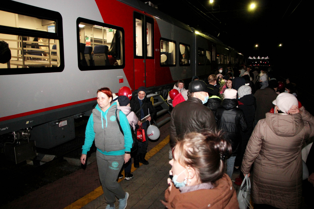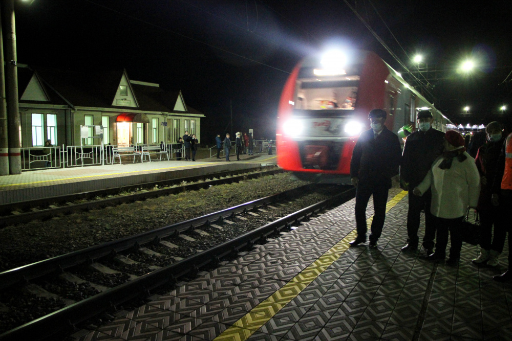 На станции Тамерлан первых пассажиров «Ласточки» дружно встречали варненцы во главе с К.Ю. Моисеевым и вручали им цветы, шары и свои улыбки. Всем было интересно узнать впечатление пассажиров от поездки в новом транспорте.