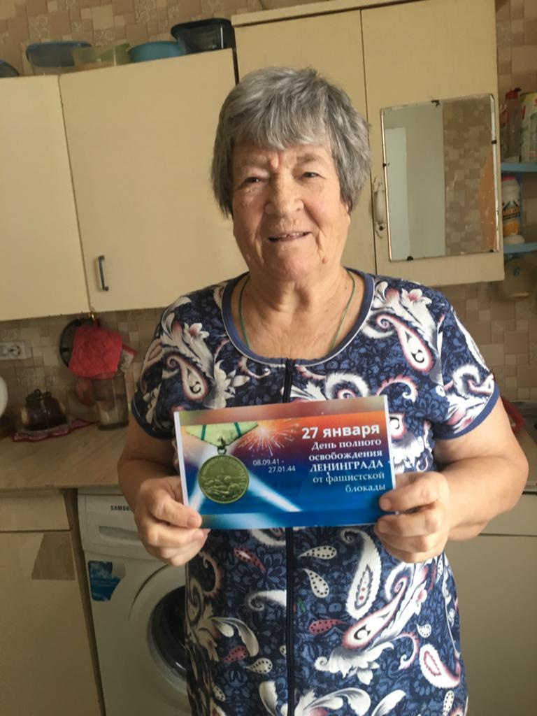 В отделении социального обслуживания на дому МУ КЦСОН Варненского муниципального района обслуживается пенсионерка с. Кулевчи Карпачева Нина Аркадьевна. Когда началась блокада города, Нине Аркадьевне было всего 2 месяца. Голод, бомбёжки и другие тяготы военного времени тяжелее всего было перенести детям. Сегодня наш долг – сделать все, чтобы те, кто пережил страшные блокадные годы и прошёл через нечеловеческие лишения ради мирной жизни будущих поколений, получили максимум заботы и внимания. Социальный работник Наталья Андревна Шалгинбаева в этот день пришла к своей подопечной, чтобы в лице Нины Аркадьевны отдать дань уважения подвигу всех жителей блокадного города и пожелать здоровья, долгих лет жизни, мира, благополучия, любви и поддержки близких людей!