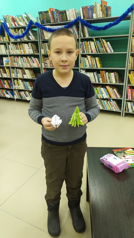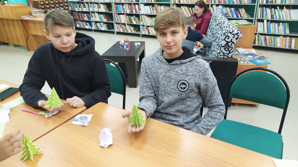 Так же, 4 января 2023 года, в Варненской детской библиотеке прошла Новогодняя мастерилка «Зачаруй сердца людей красотой своих затей». Гости библиотеки творили сказку своими руками, изготовив символ года, прыгающего зайчика, и очаровательную новогоднюю елку в технике оригами.