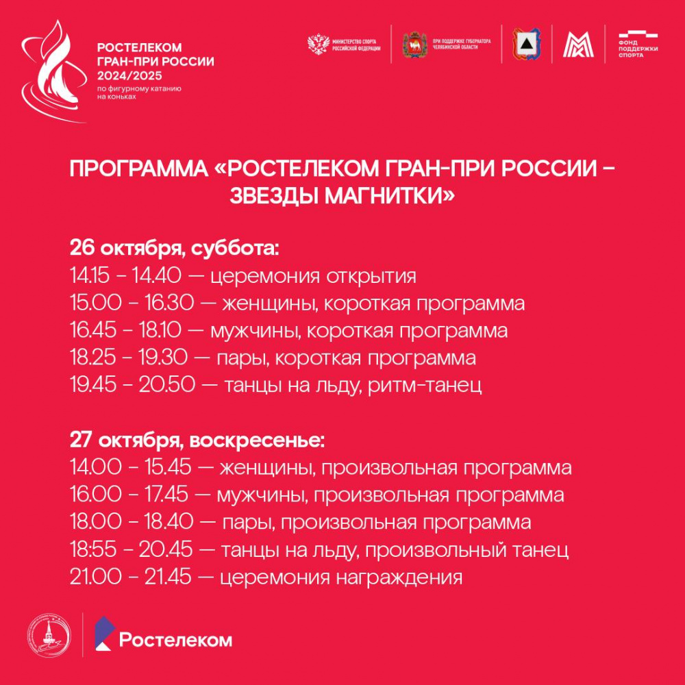 Отметим, что 23-25 октября на льду арены «Металлург» проходят Всероссийские соревнования по фигурному катанию «Звезды Магнитки» среди юниоров.