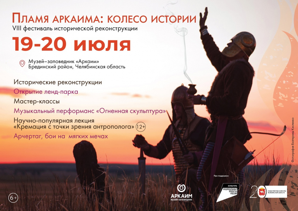 В музее-заповеднике "Аркаим" Челябинской области 20 июля стартует VIII фестиваль исторической реконструкции «Пламя Аркаима». Участие в фестивале примут более 100 реконструкторов со всей страны. Также на форум съедутся профессиональные археологи, музейные работники, мастера древних и традиционных ремесел.