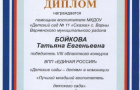 В областном конкурсе «Детские сады – детям» детский сад «Сказка» принимает участие второй год. Этот год стал знаменательным, т.к. из трёх участников, рекомендованных детским садом, победу в конкурсе одержала помощник воспитателя Бойкова Т.Е.!