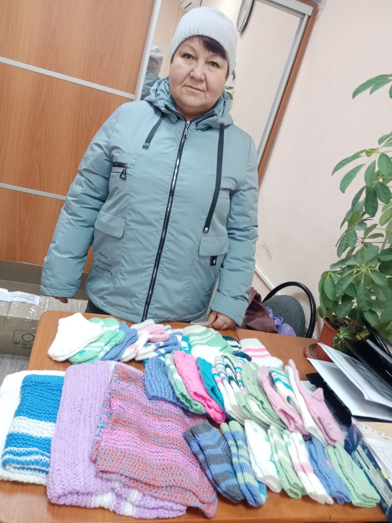 Первая посылка с вязаными изделиями от серебряных волонтеров и неравнодушных жителей была передана сотрудникам Дома ребенка 06.12.2023 г.