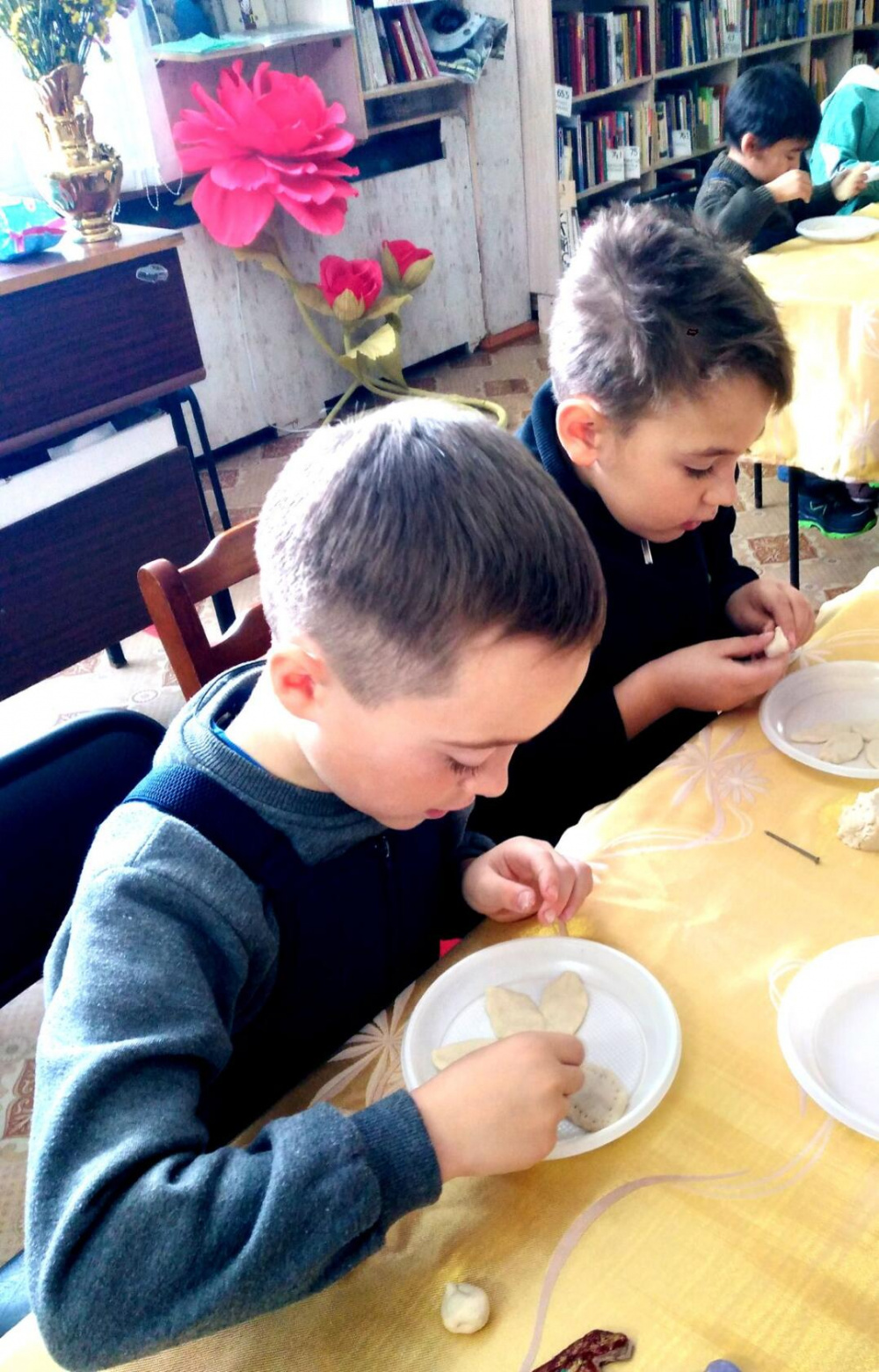 Ребята увлечённо лепили детали, раскатывали пласты, украшали свои поделки, чтобы подарить свой подарок в праздничный день. Всё работали с огромным удовольствием, каждый унёс с собой не только поделку, сделанную своими руками, но и отличное настроение и желание прийти ещё раз.
