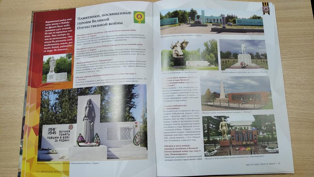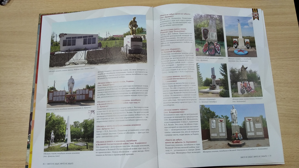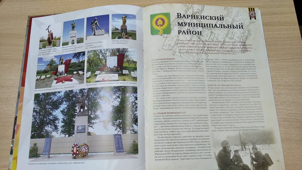 Проделана огромная работа ветеранов, краеведов, фотографов во всех уголках Челябинской области, в том числе и Варненского района, для того, чтобы отобрать необходимый материал по истории создания памятников, обелисков и мемориальных комплексов, посвященных Великой Отечественной войне.