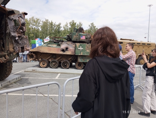 14 единиц колесных и гусеничных машин. Лучшие образцы западного военпрома. Здесь и подбитый немецкий БМП «Мардер», и покореженный британский бронеавтомобиль «Мастиф», и австрийский «Пинцгауэр». Изюминка трофейной коллекции ― танк США под названием «Непробиваемый Абрамс», который, по самым скромным подсчетам, стоит 500 миллионов рублей. Участники экскурсии воочию смогли убедиться, что несокрушимость и неуязвимость хваленой НАТОвской техники – всего лишь миф. Члены семей участников СВО (а в состав группы входили дети и жены участников специальной военной операции) выразили надежду на скорейшее окончание военной операции и возвращение своих близких домой с Победой. А наши серебряные волонтеры в очередной раз смогли почувствовать, сколь значима их поддержка и помощь в организации работы гуманитарного центра «Вместе за Победу» для достижения успехов нашей страны в специальной военной операции.