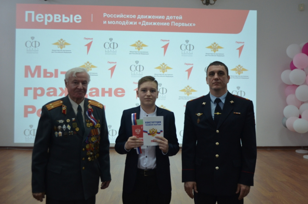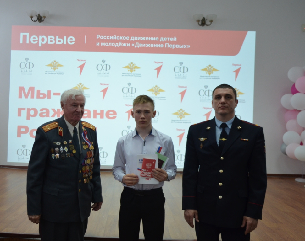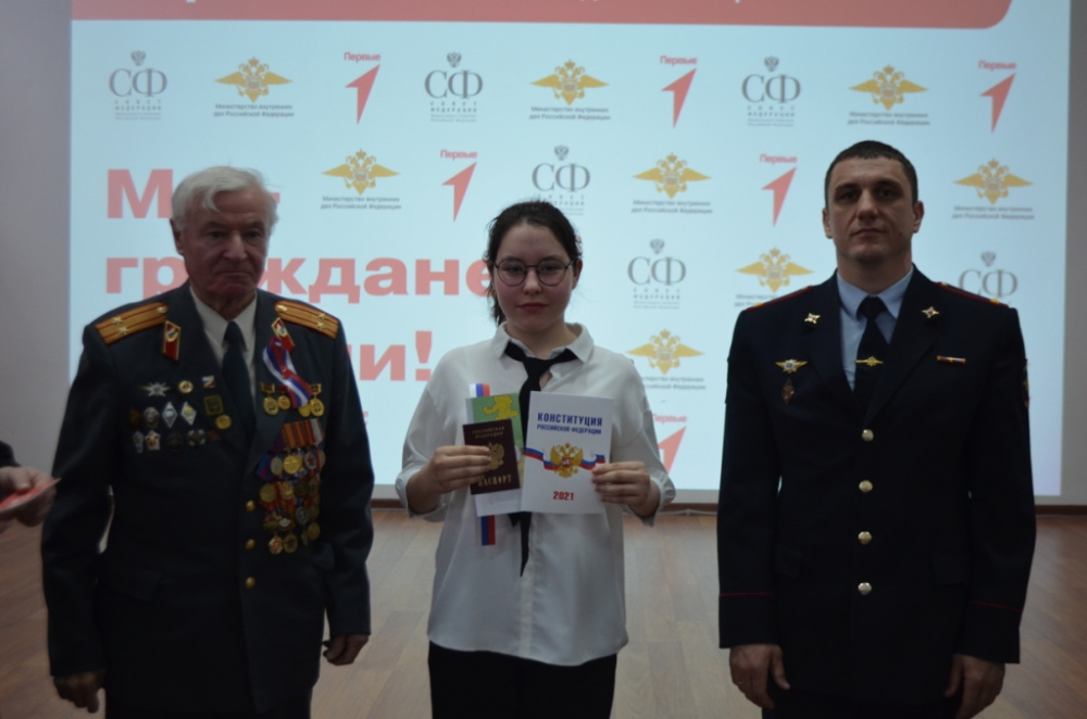 Право вручить главный документ юным гражданам было предоставлено временно исполняющему обязанности начальника отдела подполковнику внутренней службы Николаю Рыбакову и подполковнику милиции в отставке Виктору Артемьеву. Под аплодисменты свои первые паспорта получили 11 школьников. Вместе с паспортом школьникам вручили книги с текстом Конституции Российской Федерации