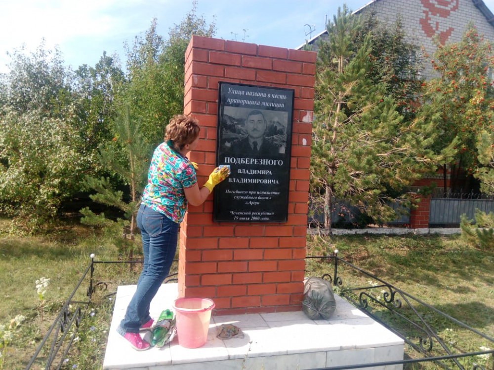 Полицейскими убрана территория вокруг мемориальной доски, скошена и убрана сухая трава, убран мусор.
