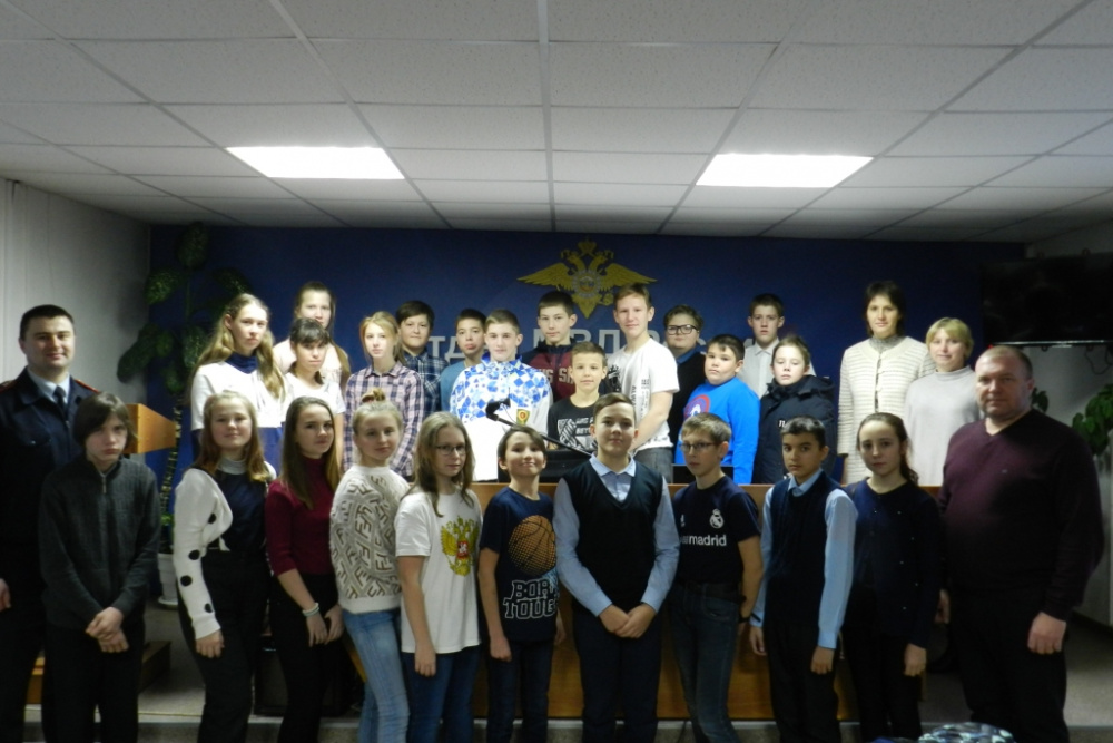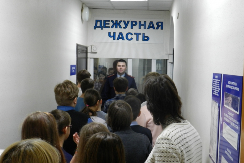 На обзорной экскурсии по отделу, начальник отделения по работе с личным составом майор внутренней службы Алексей Никуленков рассказал школьникам об особенностях работы дежурной части, о важности своевременного принятия, регистрации и реагирования на сообщения о преступлении или административном правонарушении. О процедуре подачи заявления в полицию, предупредил об исключении фактов баловства, ложных сообщений о преступлениях. Мальчишки и девчонки узнали, что за сутки в дежурную часть поступает много сообщений и заявлений о происшествиях по району, и все обращения граждан рассматриваются.