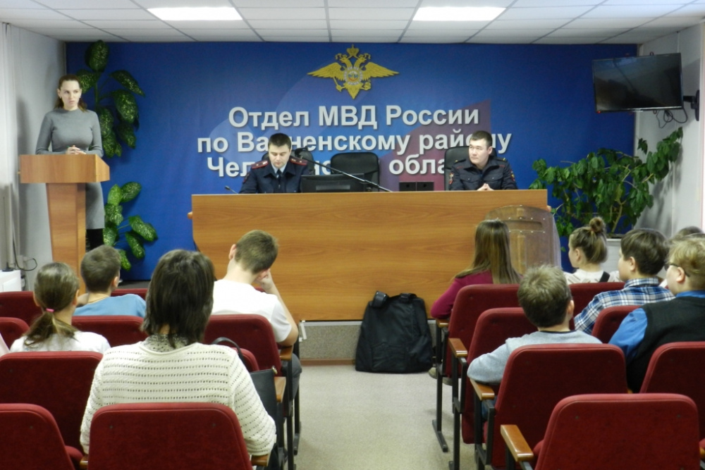 Затем в актовом зале отдела, ребятам рассказали историю отдела полиции, о службе в органах внутренних дел, о трудных, но интересных полицейских буднях. Школьники с интересом смотрели фотографии и награды за спортивные достижения, портреты ветеранов МВД и участников боевых действий.