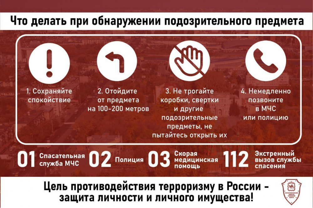— Необходимо немедленно сообщить об обнаружении подозрительного предмета в полицию или иные компетентные органы.