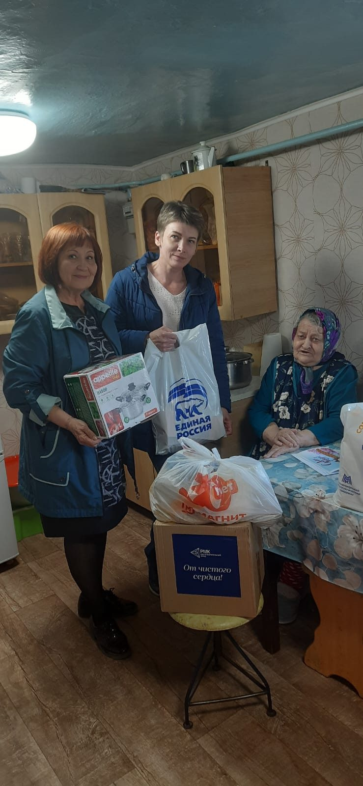 Накануне великого праздника Дня Победы жителям блокадного Ленинграда, несовершеннолетним узникам фашизма, труженикам тыла, вдовам участников Великой Отечественной войны и членам семей погибших участников специальной военной операции были вручены подарочные продуктовые наборы от благотворительных фондов «Металлург» и «Русь» с поздравительными адресами Губернатора Челябинской области.