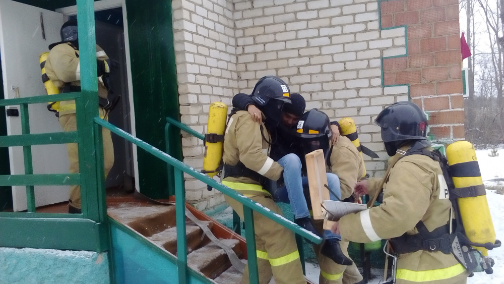 Согласно замысла занятий по прибытию к условному месту загорания личным составом была проведена разведка, оперативно создано звено ГДЗС, которое с рукавной линией проследовало к очагу загорания. Итог занятий – ликвидация условного загорания, эвакуация пострадавших.