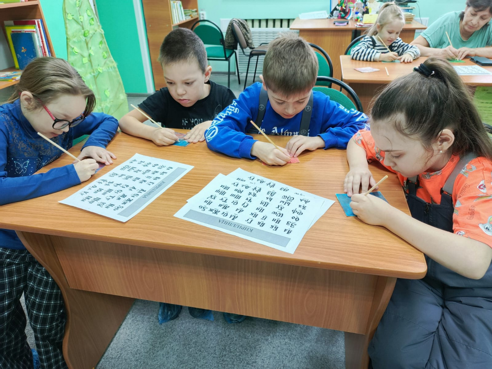 Для приобретения практических навыков древнего рукописного письма воспользовались шрифтом «кириллица», «стилусами» и «церами», в нашем случае это были деревянные заострённые палочки и дощечки с пластилином, плакатными перьями разной ширины и плакатной тушью. Вся эта «новая» и кропотливая работа вызвала у ребят неописуемый восторг и массу эмоций.