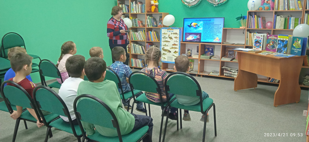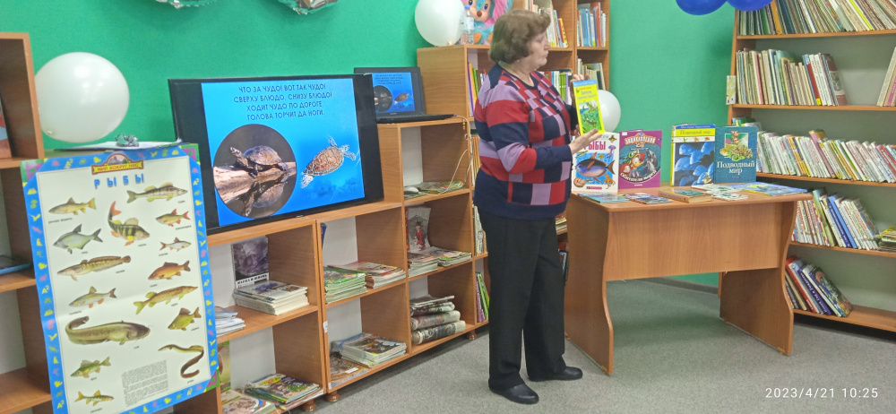 21 апреля с воспитанниками подготовительной группы № 6 «Речевичок» МКДОУ «ЦРР – д/с Алёнушка» в Варненской детской библиотеке прошло мероприятие «Обитатели водоёмов».