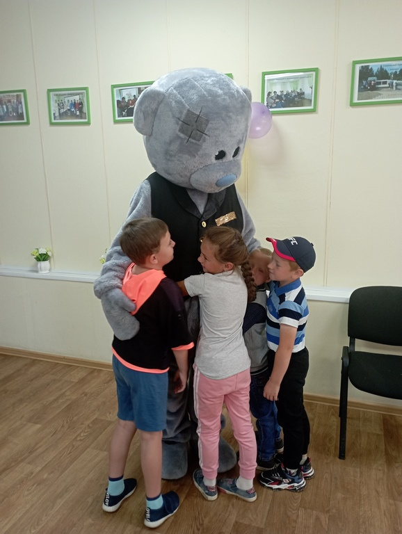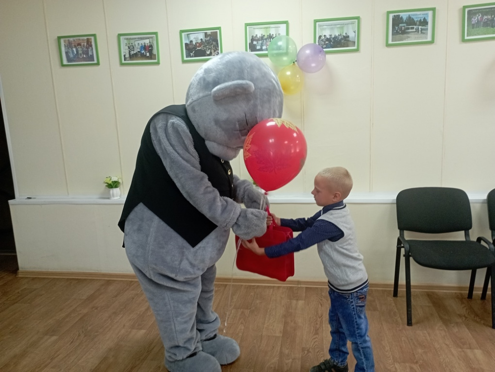 А чудеса продолжались. В гости к детям с поздравлениями и воздушными шарами пришёл плюшевый мишка Тедди, который вручил каждому набор первоклассника.