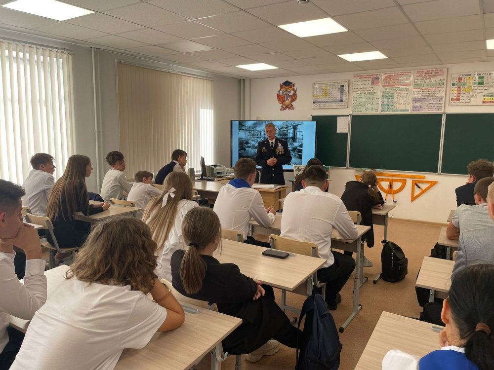 Председатель Совета ветеранов ОМВД России по Варненскому району майор юстиции в отставке Алексей Коннов принял участие в проведении «Урока мужества» со старшеклассниками 9 «а» класса гимназии им. Карла Орфа с. Варна. Подобные встречи организуются регулярно, ветераны с удовольствием откликаются на приглашения пообщаться с подрастающим поколением, чтобы воспитывать в детях активных граждан, патриотов страны.