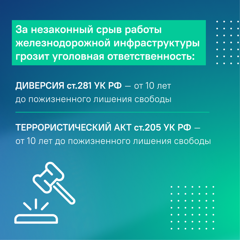 Она также подчеркнула, что никакие инструкции не помогут избежать ответственности, ведь железные дороги на всех участках оборудованы системами видеонаблюдения.