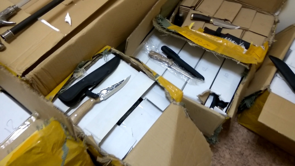 Экспертиза показала, что 1525 единиц ножей, мечей и сабель являются холодным оружием. В соответствии со ст.222 УК РФ «Незаконные приобретение, передача, сбыт, хранение, перевозка или ношение оружия, его основных частей, боеприпасов» злоумышленникам грозит лишение свободы сроком до 2-х лет.