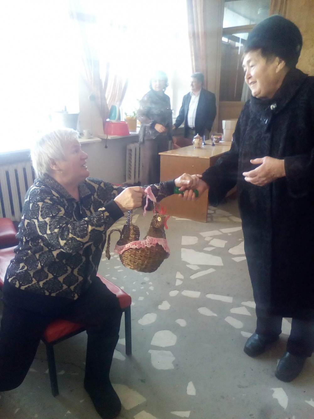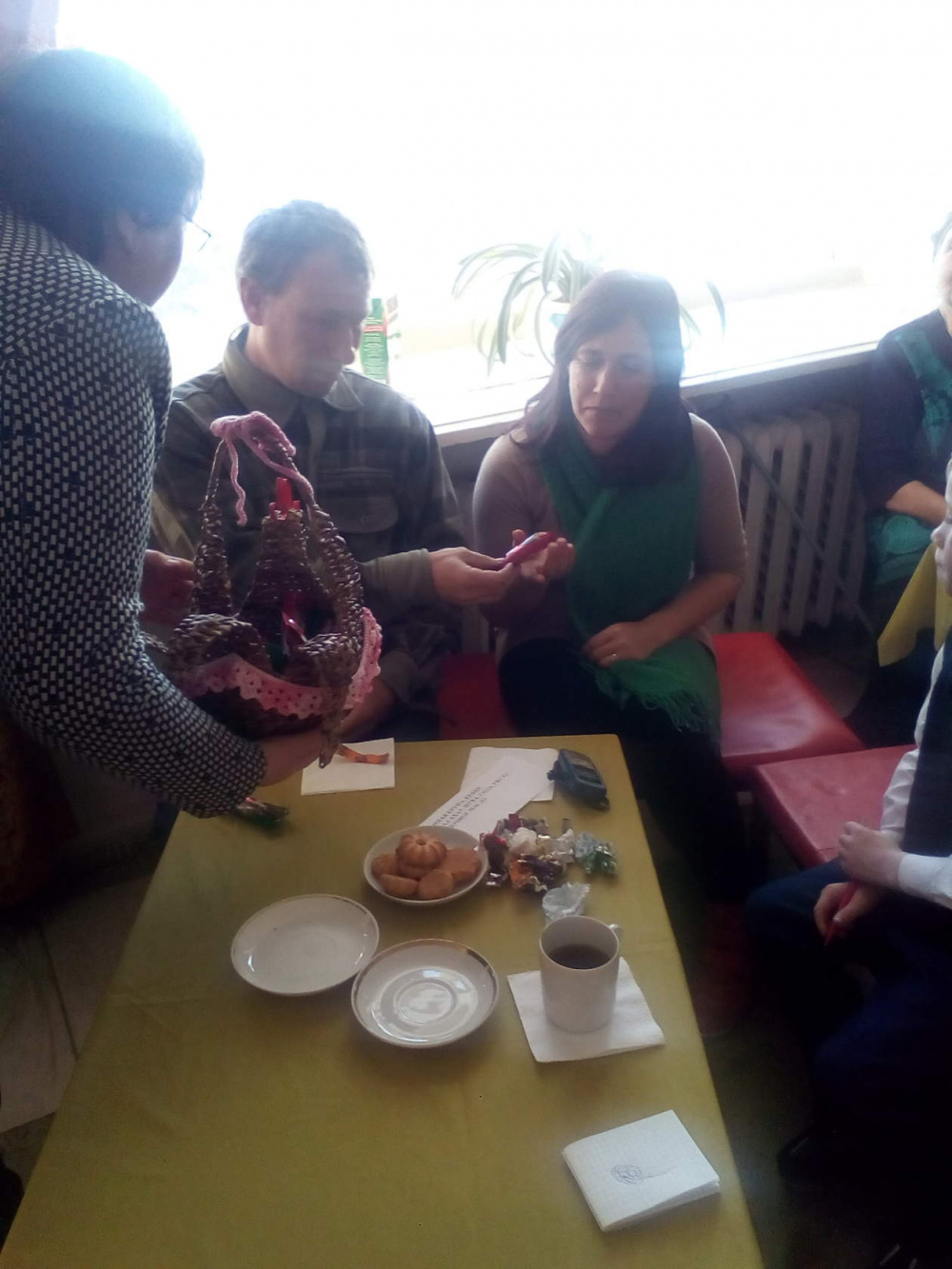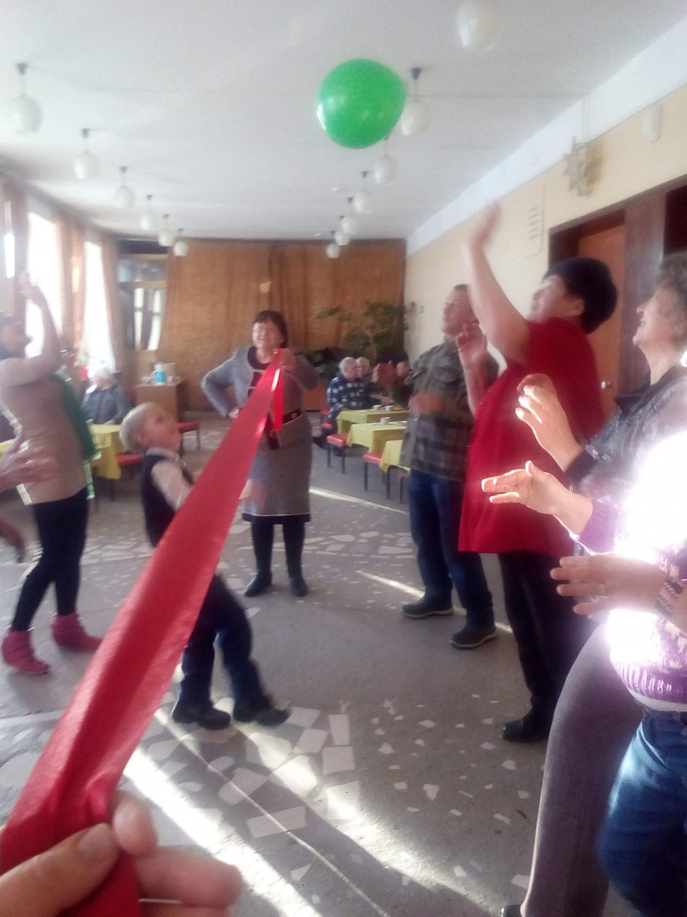 В завершении праздничной программы гости выполнили игровое задание «Угости соседа», во время которого они передавали друг другу лукошко с конфетами, заряженное добротой и радостью, при этом высказывая пожелания и комплименты близко сидящему соседу. Закончился праздник Салютом из надувных шаров в честь сильных духом людей.