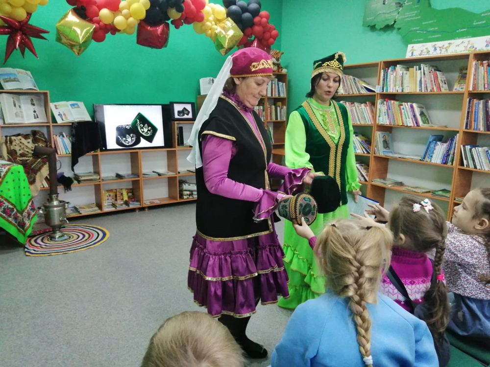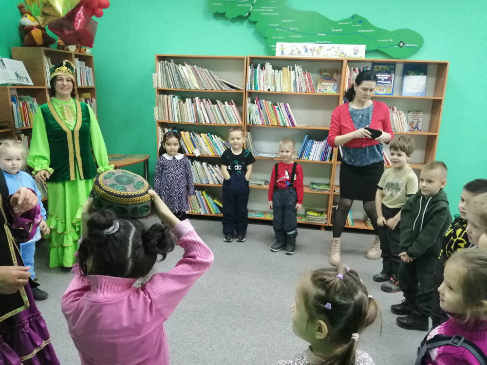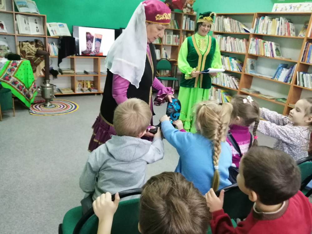 На этой встрече дети с большим вниманием слушали чтение татарской народной сказки «Три дочери», а затем правильно отвечали на вопросы библиотекаря.