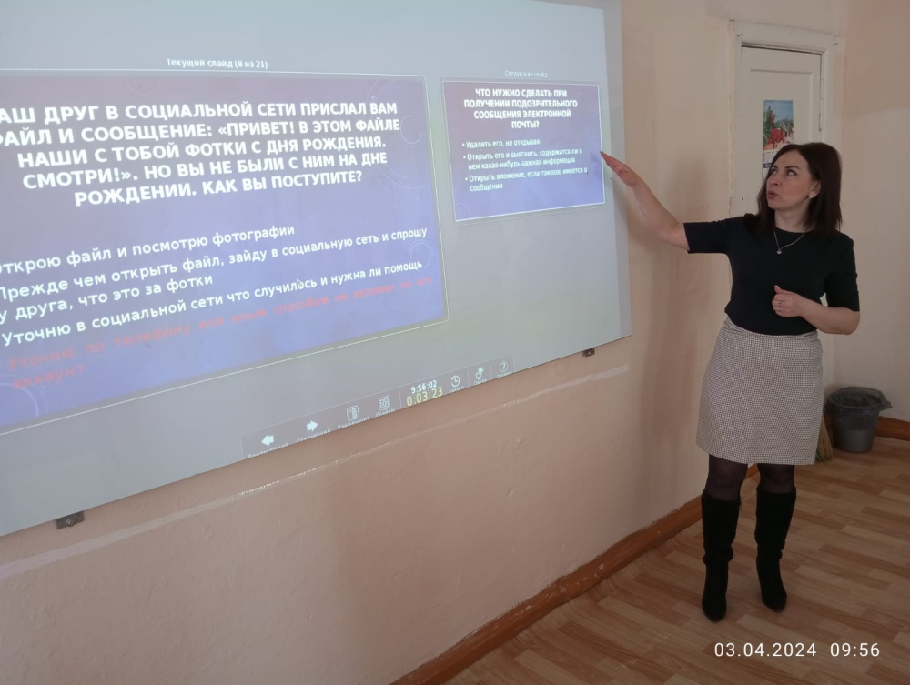 Методистом управления образования Варненского муниципального района Любимовой К.Ю. проведена беседа среди обучающихся 7-8 классов на тему: «Информационная безопасность несовершеннолетних: как обезопасить себя в сети»;