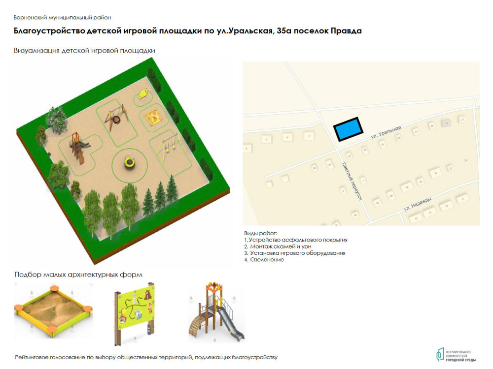 детская площадка по ул. Уральской, 35а в пос. Правда;
