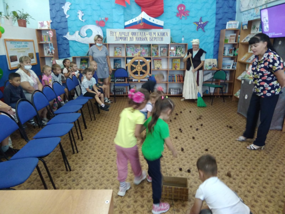 Дети вместе с Бабой Ягой отвечали на вопросы сказочной викторины, отгадывали загадки, участвовали в веселых конкурсах «Туфелька для Золушки», « Шишки для мишки», «Колобок». Дети активно и с удовольствием отвечали на коварные вопросы Бабы Яги «Отгадай сказку» и получили сладкие призы. В игровой форме ребят познакомили с правилами библиотеки и правилами пользования книгой.