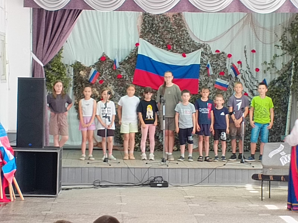На протяжении всего праздника звучали стихи и песни о Родине и России. Их подготовили ребята из летнего школьного лагеря и вокальная группа "Сударушка".