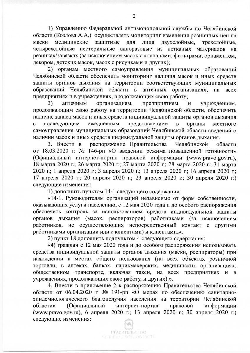 Распоряжение Правительства Челябинской области № 288-рп от 06.05.2020 г.