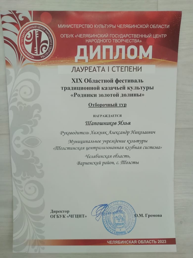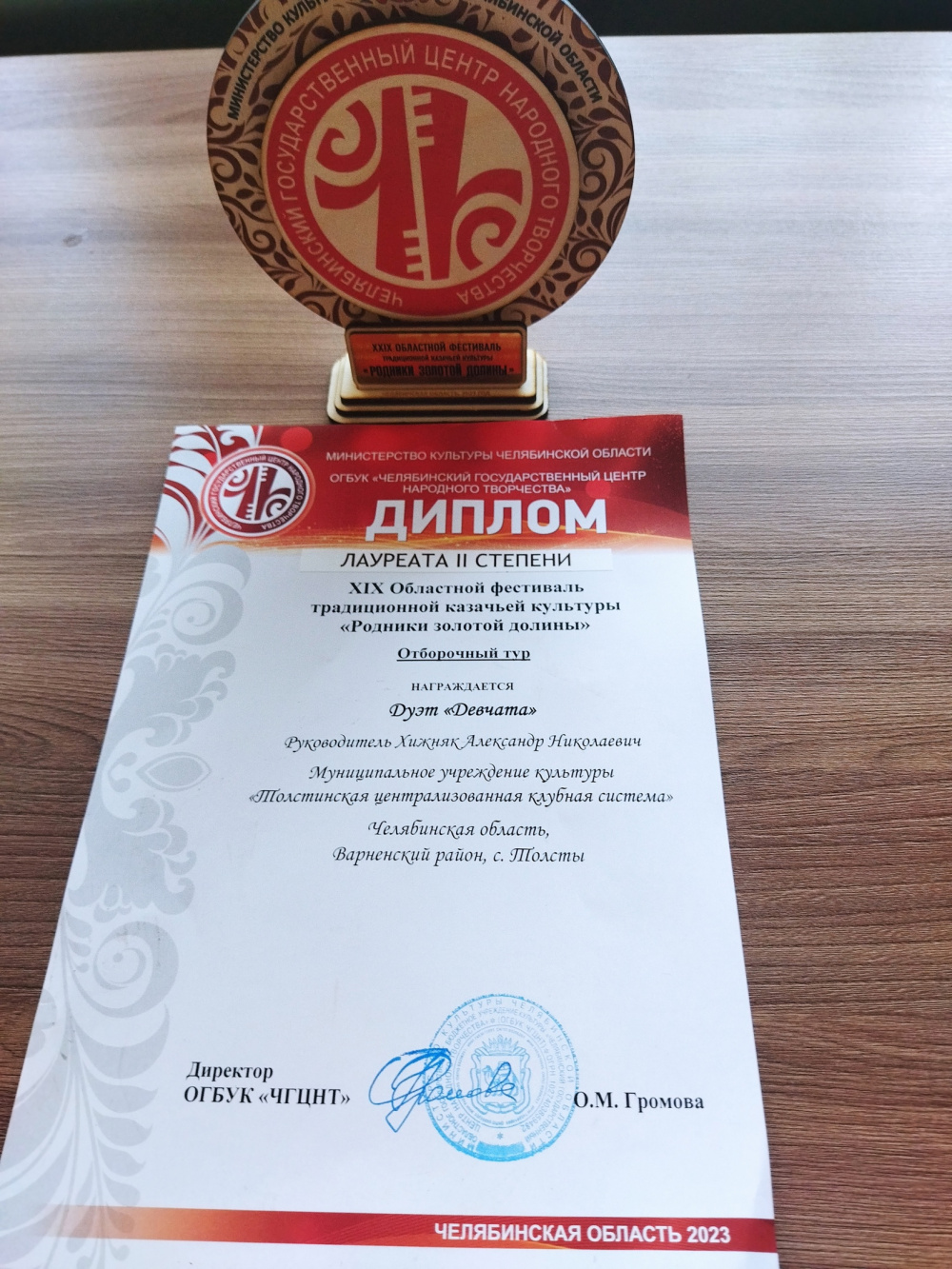 23 сентября в с. Агаповка прошел отборочный тур ХХIХ Областного фестиваля-конкурса традиционной казачьей культуры «Родники золотой долины», где собрал любителей и знатоков казачьей песни с южной стороны Челябинской области. Фестиваль стал праздником творчества, таланта и оптимизма. Солист казачьей песни Толстинского Дома культуры Шапошников Илья и дуэт «Девчата» раскрыли все грани своих талантов, став Лауреатами I и II степени, исполнив казачьи песни, зажигая сердца, которые складываются в один большой костер любви традиций братства и единства. И пусть горит этот костер в каждом человеческом сердце, согревая теплом радушия и гостеприимства. Участники фестиваля унесли с собой искорку казачьего пламени, собравшись вокруг пылающей любви к славным народным традициям!