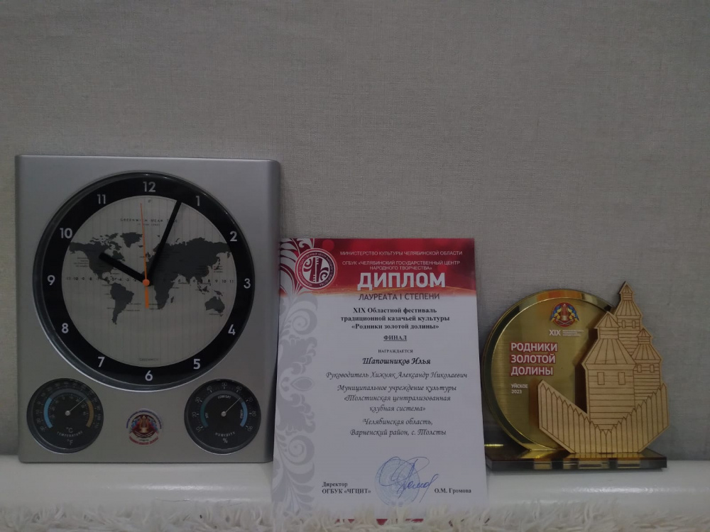 8 октября в воскресенье, в Уйском Доме культуры состоялся - финал областного фестиваля - конкурса традиционной казачьей культуры «Родники золотой долины». Наши земляки Заслуженный коллектив народного творчества Челябинской области Ансамбль русской песни «Субботея», руководитель Горват Татьяна Абриковна МУК «Новоуральская ЦКС» и Участник художественной самодеятельности МУК «Толстинская ЦКС» Шапошников Илья, руководитель Хижняк Александр Николаевич победили в этом конкурсе.