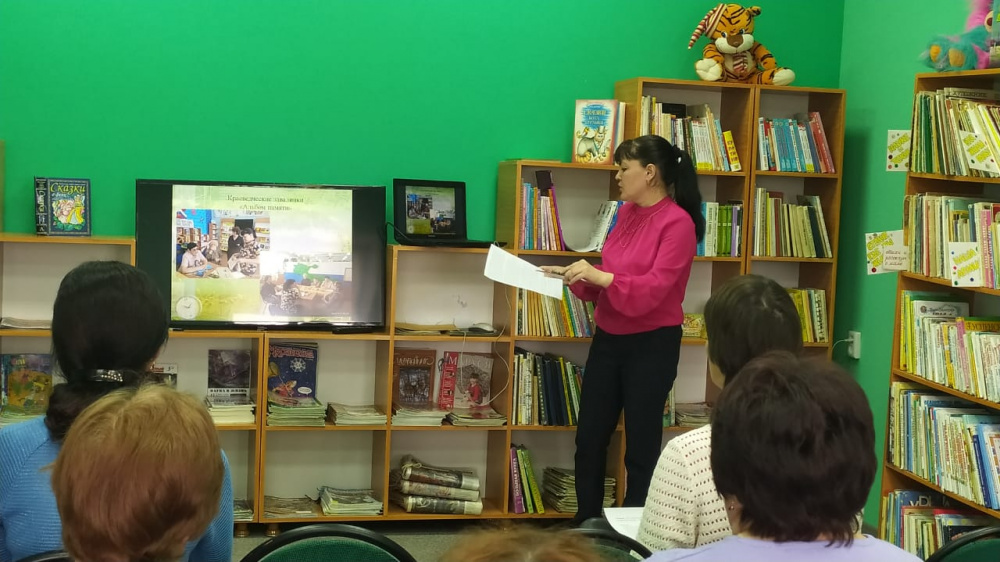 На встрече с докладом о роли библиотеки в сохранении и популяризации культурно- исторического наследия выступили методист Резватова О.В., Симцова А.Ж. – библиотекарь МОУ СОШ п. Красный Октябрь, опытом работы в этой области поделились ; библиотекарь МОУ СОШ с. Бородиновка Ромаданова А.И., библиотекарь ч\з Варненской ДБ Завьялова Е.Н., Даниленко Н. И. библиотекарь Бородиновской сельской библиотеки.