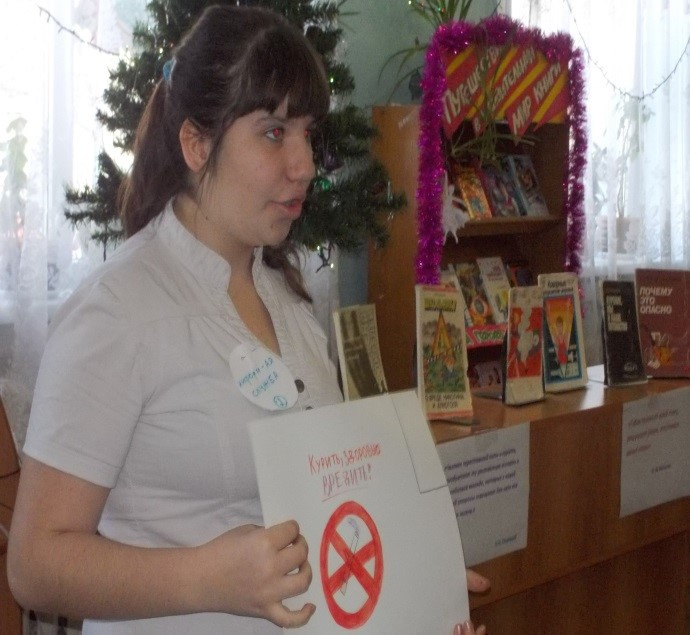 18 декабря в Варненской детской библиотеке была проведена ролевая игра "Будьте ЗДОРОВЫ! Поговорим о вреде курения» с учениками 7б класса школы №2. Ребята выступали в роли историков, химиков, представителей службы статистики, медиков, представителей информационной службы, представителей табачной компании. В ходе мероприятия были зачитаны отрывки из произведений, где описаны весьма болезненные ощущения подростков после первой затяжки, а также отношение писателей к табакокурению, такие как М. Твен, Л.Н. Толстой, Гёте, А.С. Пушкин, В. Маяковский.