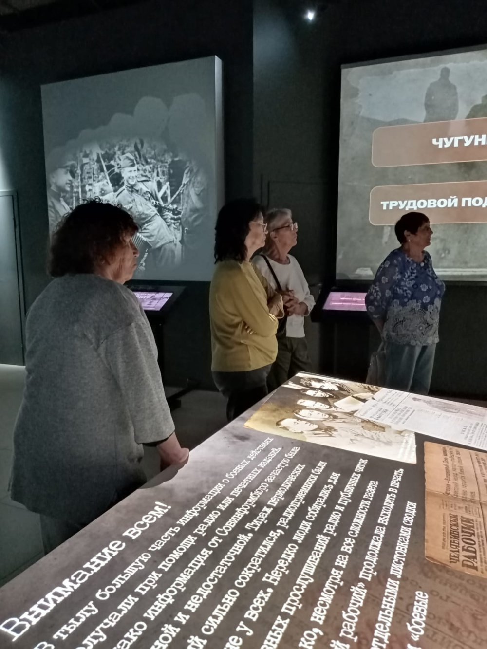 Пенсионеры побывали в мультимедийных залах, которые помогают узнать о жизни Челябинска в годы Великой Отечественной войны с помощью органов чувств.