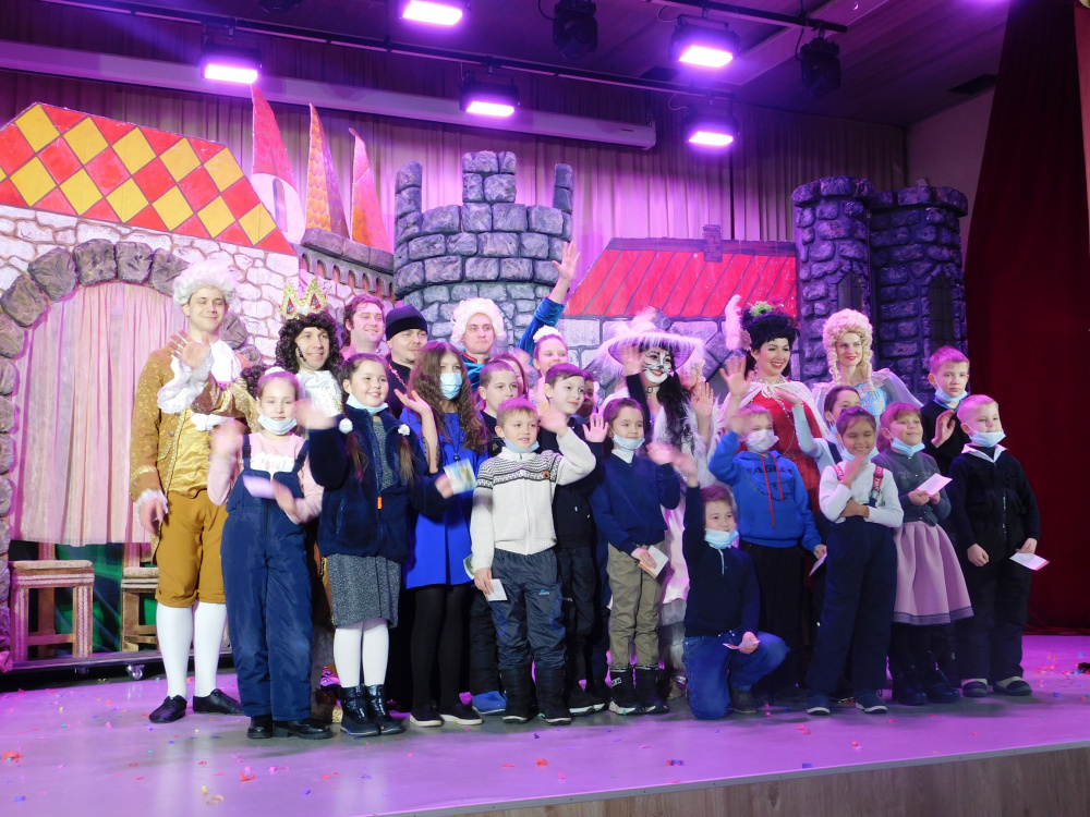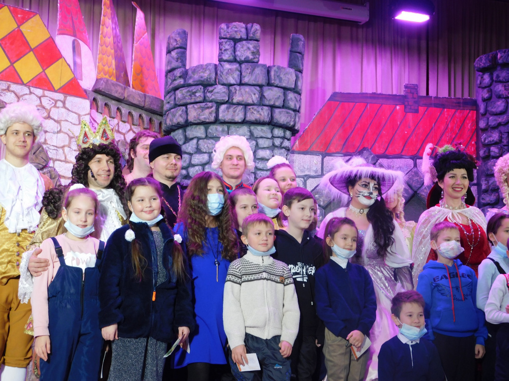 Конечно, все с нетерпением ждали представление - Магнитогорского театра оперы и балета – мюзикл «Мурр-киз де ля Кот». Основой мюзикла стала сказка Шарля Перро «Кот в сапогах», музыкальную версию, которой создал популярный российский композитор Егор Шашин. Мюзикл, как и положено, наполнен яркими песнями, которые характеризуют героев: тут и мечтания Принцессы выйти замуж за Принца, и серенада Феликса, и уговоры папочки - Короля пойти дочку покушать... Весёлый Кот поддерживает песнями друзей и влюбляется в нежную Кошечку, Ворона-воровка сговорилась с Людоедом и пытается навредить друзьям, фрейлины Принцессы и слуги Короля пытаются услужить королевской семье, Генерал и красавец-Принц добиваются руки Принцессы... Перед глазами детей за спектакль появляется 20 персонажей. Постановщики и артисты спектакля сделали образы героев сказки яркими, добавили эмоции и сюжетные линии. Детей на спектакле ждали чудеса, удивительные приключения, невероятные превращения, красивая музыка, зажигательные танцы, яркие костюмы и добрый настрой! Мюзикл прошел на одном дыхании, дети переживали за любимых героев, смеялись над приключениями действующих лиц. По завершении спектакля, дети долго не отпускали со сцены артистов, даря им теплые аплодисменты. Ну и конечно, ни один новогодний праздник не обходится без подарков. По окончании спектакля все ребята, пришедшие на встречу со сказкой, получили сладкие подарки от Губернатора области Алексея Текслера. А так же каждому ребенку подарили памятный подарок буклет-альманах «Рождественская сказка». Дети пошли домой с радостным настроением, чтобы рассказать родителям, как они замечательно провели время на Рождественской ёлке.