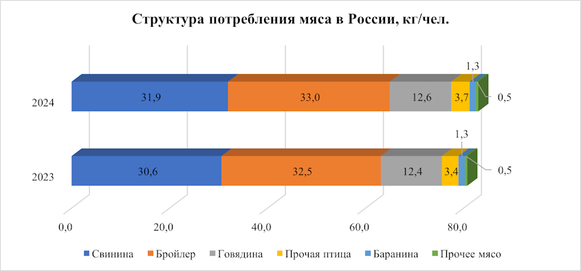 Тем не менее, дальнейший прирост до прогнозируемых 83 кг по итогам 2024 года обеспечат традиционные лидеры: свинина и бройлер, считает Андрей Дальнов.