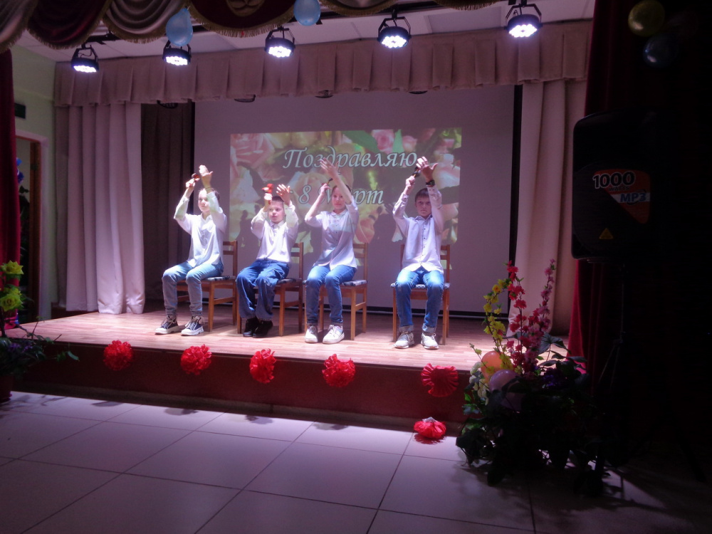 Спасибо всем участникам концерта, спасибо тем, кто пришёл к нам на праздник. Мы собрали 10 тысяч рублей, которые передадим в фонд "Вместе за победу". Мы все вместе сделали очень доброе дело. Много теплых слов прозвучало в адрес наших дорогих женщин. Очень приятно было смотреть на ведущих, наших парней 11-ти классников: Подкорытова Сергея и Галеева Бахтияра. Ложкари порадовали зал своим мастерством. И пусть немножко разволновались, всё таки новое дело и очень трудное, стучать ложками. Но молодцы, справились. А девочек с танцевальными номерами провожали бурными аплодисментами. Ну и, конечно, наш ансамбль "Казаченька", как всегда, приготовили вниманию зрителей много новых песен. Поздравил женщин и Бахтияр Галеев, исполнив на гармошке наигрыши. А самой маленькой участницей концерта стала Гатиатулина Амина с песней о бабушке. На последней песне зрители просто пустились в пляс.