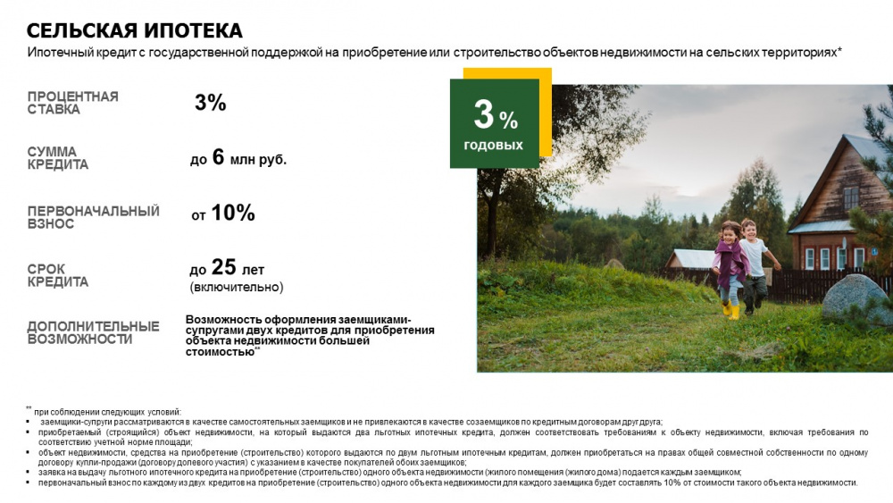 Остальные существенные условия Сельской ипотеки остались прежними: