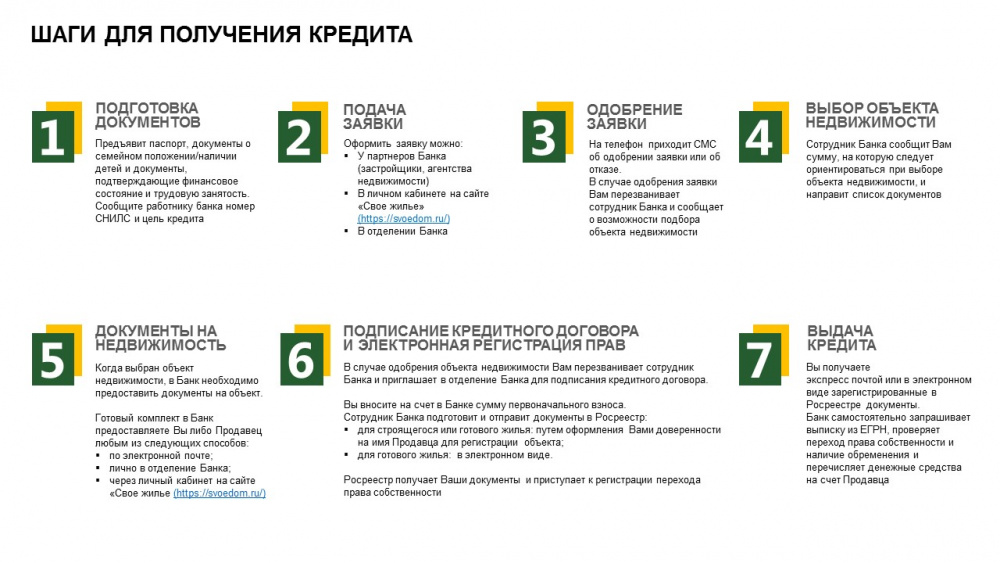 Для удобства клиентов в интернете работают цифровые сервисы «Своё Село» (svoe-selo.ru) и «Свое Жилье» (svoedom.ru), где можно удаленно без визита в Банк подать заявку на Сельскую ипотеку, найти дом, квартиру, участок или заказать индивидуальный проект жилого дома.