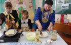 Третья площадка «Хлеб всему голова» началась с мастер-класса по приготовлению теста для хлеба, попутно с ведущей две сестрички пекли ароматные блины. На этом мастер-классе были представлены различные дары природы: запечённый в духовке по особому рецепту гусь, жареная под лимонами рыба, вкуснейший каравай, салаты из свежих овощей, различные сдобные вкусности. Администрация школы представила семью фермеров, которой гордится весь посёлок. Вся эта семья дружно и весело рассказывали о своём быте, о трудной, но любимой работе.