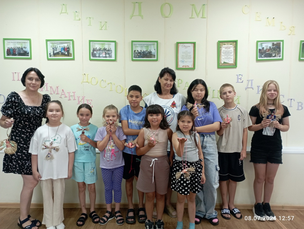 На мероприятии ребята узнали об истории возникновения праздника, связанного с покровителями счастливого супружества православными святыми Петром и Февронией. Мастер-класс ребятам подготовила и провела серебряный волонтер и мастерица Селиверстова Альфия Шагшарифовна. Ребята своими руками сделали поделку в виде семейного оберега- птицы из джутового шпагата с добавлением цветной пряжи. По окончании мероприятия специалисты ОПСиД поблагодарили всех участников мастер- класса за участие, выразив благодарность серебряному волонтеру за неравнодушное отношение к подрастающему поколению.
