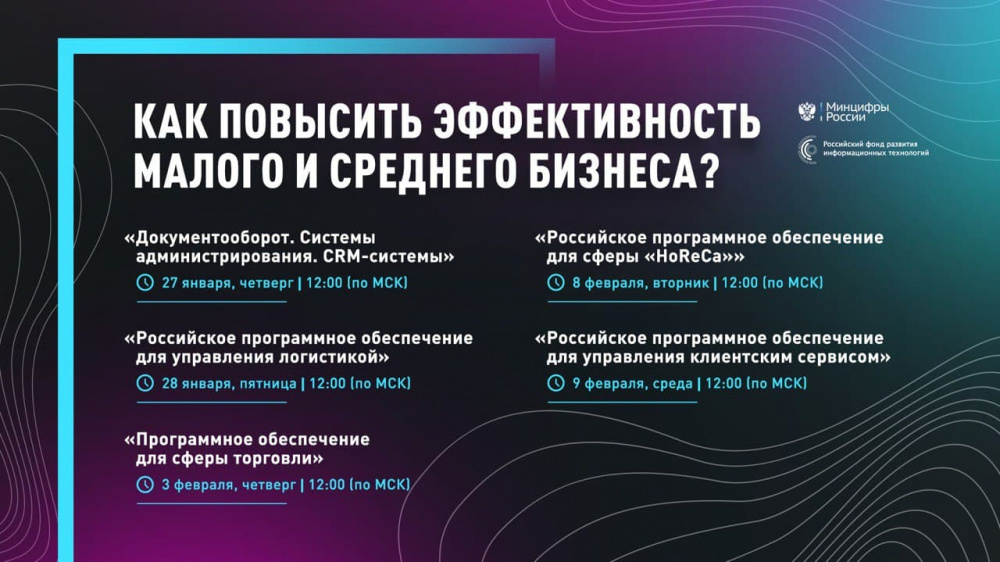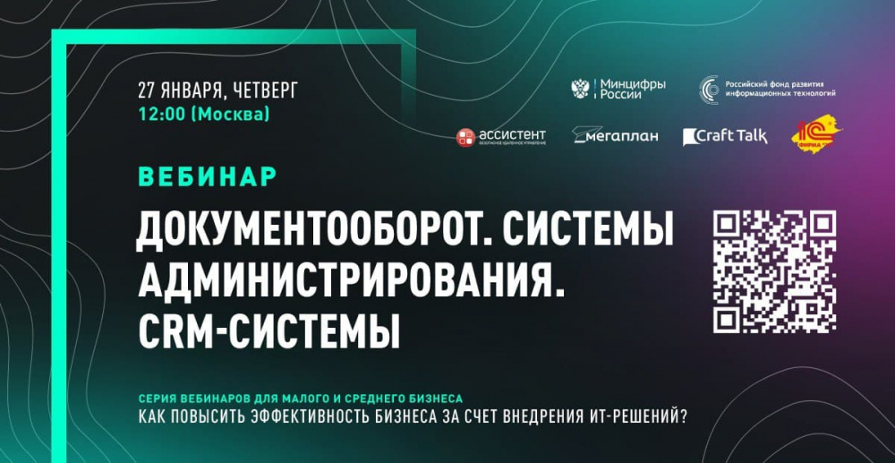 27.01.2022 12-00 | «Документооборот. Системы администрирования. CRM-системы» | https://events.webinar.ru/48401259/10189493 | - Виталий Панкратов, заместитель директора по управлению проектами ООО "САФИБ", «Система удаленного мониторинга и управления «Ассистент»».