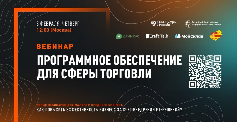 03.02.2022 12-00 | «Программное обеспечение для сферы торговли» | https://events.webinar.ru/48401259/10189801 | - Андрей Павлов, ООО «1С-Онлайн», руководитель направления "Решения для торговли, логистики, транспорта и сферы услуг", "Краткий обзор отраслевых решений 1С для торговых предприятий".
