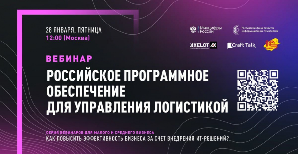 28.01.2022 12-00 | «Российское программное обеспечение для управления логистикой» | https://events.webinar.ru/48401259/10189753 | - Андрей Павлов, ООО «1С-Онлайн», руководитель направления "Решения для торговли, логистики, транспорта и сферы услуг", "Автоматизация процессов управления автотранспортом с отраслевыми решениями 1С".