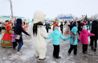 Гости участвовали в старинных народных забавах и играх: в петушиных боях, катались наперегонки на санках, прыгали в мешках.
