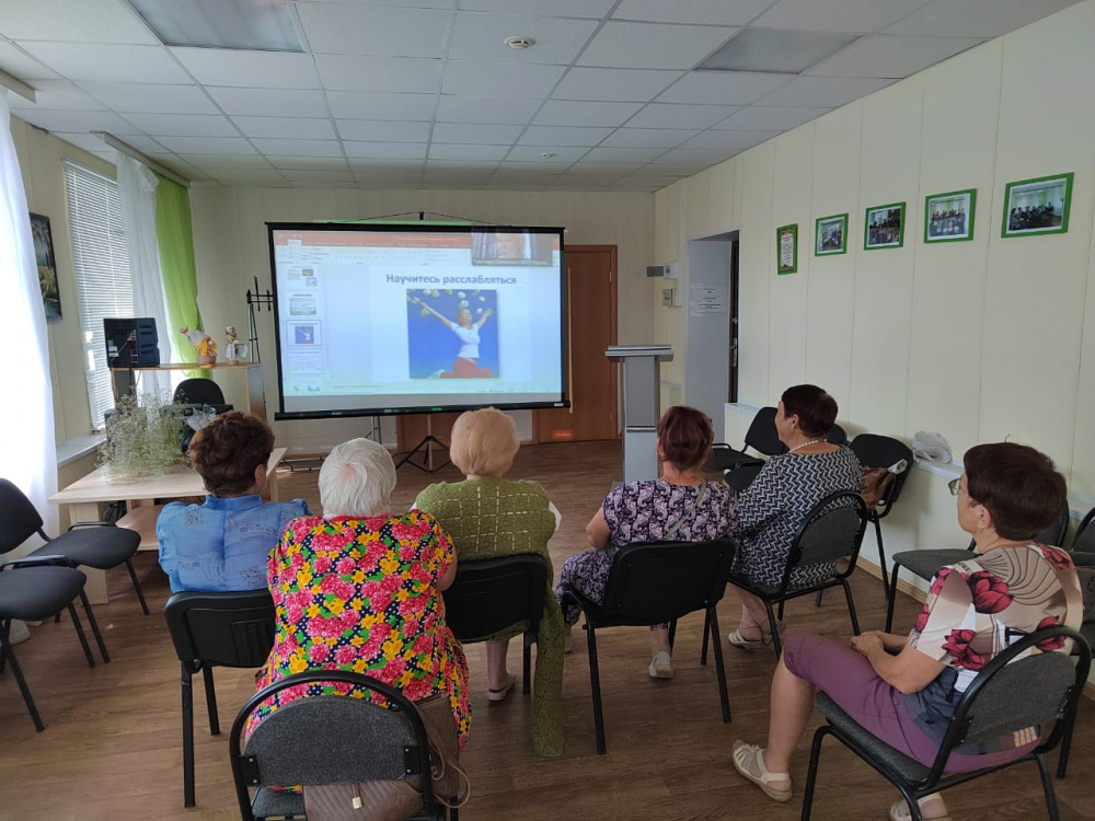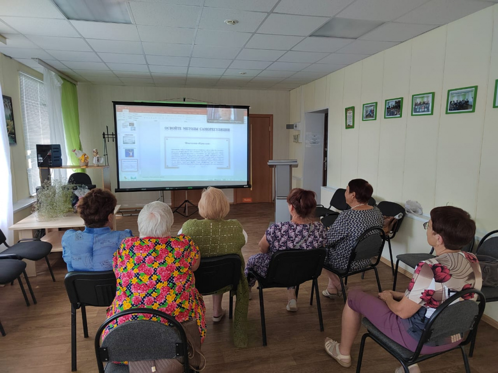 В этот же день серебряные волонтеры и пенсионеры приняли участие в онлайн-встрече «Полезные четверги» на тему «Эмоциональное выгорание волонтеров». Клинический психолог Самсонова Гульнара Хайдаровна рассказала, что нужно делать, чтобы быть полезным в работе и как снимать напряжение после нее.