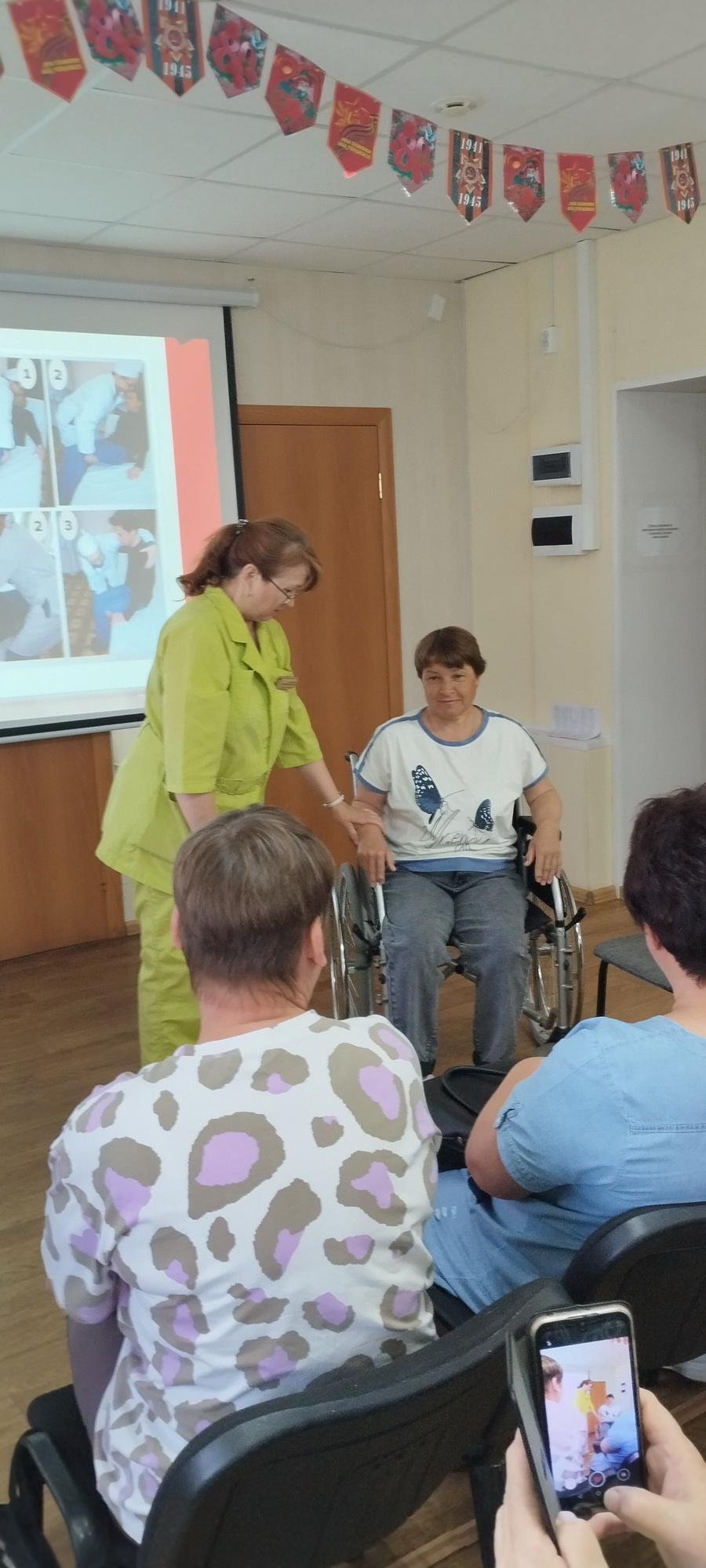 03.06.2025 г. в МУ «КЦСОН Варненского муниципального района» прошло очередное занятие «Школы ухода и реабилитации» на тему: «Перемещение маломобильного человека в кровати и вне её». Занятия провела медсестра ГБУЗ «Районная больница с. Варна» Евгения Петровна Кузнецова. Были рассмотрены вопросы применения вспомогательных средств для перемещения, пересаживания маломобильного человека. Современные технические средства значительно облегчают жизнь больных, а также берегут здоровье и силы людей, непосредственно ухаживающих за ними. К вспомогательным средствам относятся поворотный диск, опоры для подъёма с кровати, даже обычная пеленка либо ремень могут служить вспомогательным средством для поддержания и перемещения больного. При правильном перемещения больного необходим психологический контакт, главное - не причинять боль человеку, и в то же время обезопасить себя от нежелательных травм.