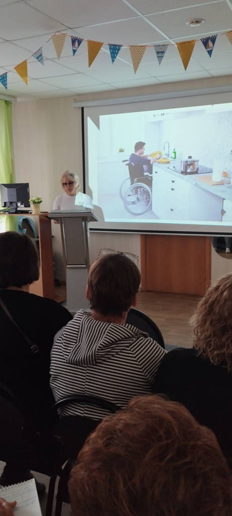 Тема очень обширная, говорить о людях, подвергшихся такому страшному заболеванию, можно много. Но Елена Владимировна выделила несколько самых главных аспектов, рассказала о стадиях этой грозной болезни, о том, какой должна быть реабилитация на каждой из них, как спланировать уход за постинсультными больными, как правильно должно идти восстановление таких людей. Также Елена Владимировна наглядно показала, какие существуют вспомогательные средства для реабилитации постинсультных больных. Завершая рассказ, Елена Владимировна отметила, что в первую очередь успех реабилитации граждан, перенесших инсульт, зависит от мотивации на возвращение к полноценной жизни самого пациента и мотивации людей, которые осуществляют уход.
