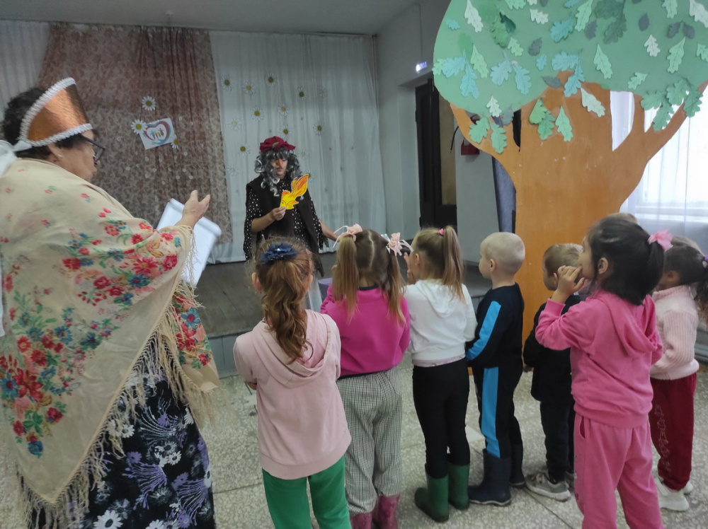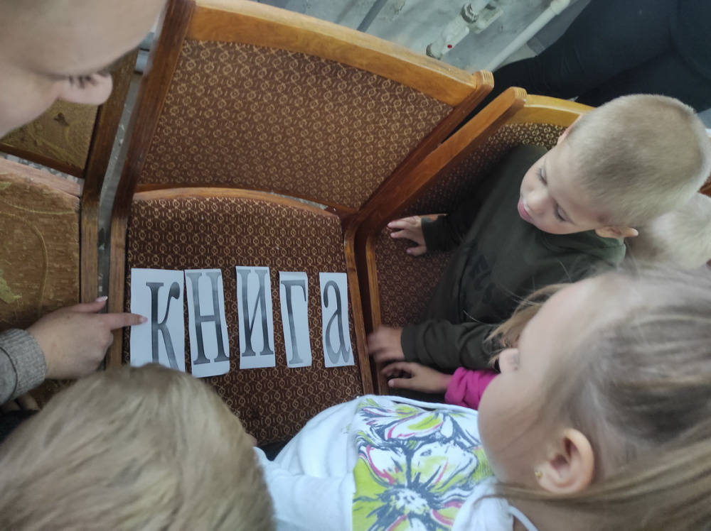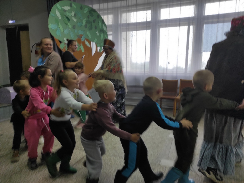 Вместе они совершили увлекательное и необычное путешествие. На каждой полянке их ждали загадки, вопросы викторины. Сказочные герои за выполненное заданий ребятам вручали по одной букве. Из них затем было составлено слово «Книга». Ребята помогли разобрать сундук Бабе Яге, станцевали с ней весёлый танец, и она угостила их конфетами.
